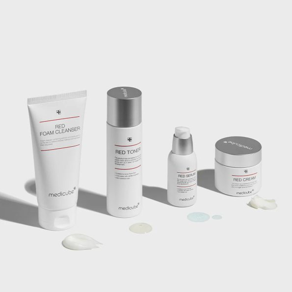 Red Toner – Toner transfers skin texture, recharges moisture, and helps absorbing future products.