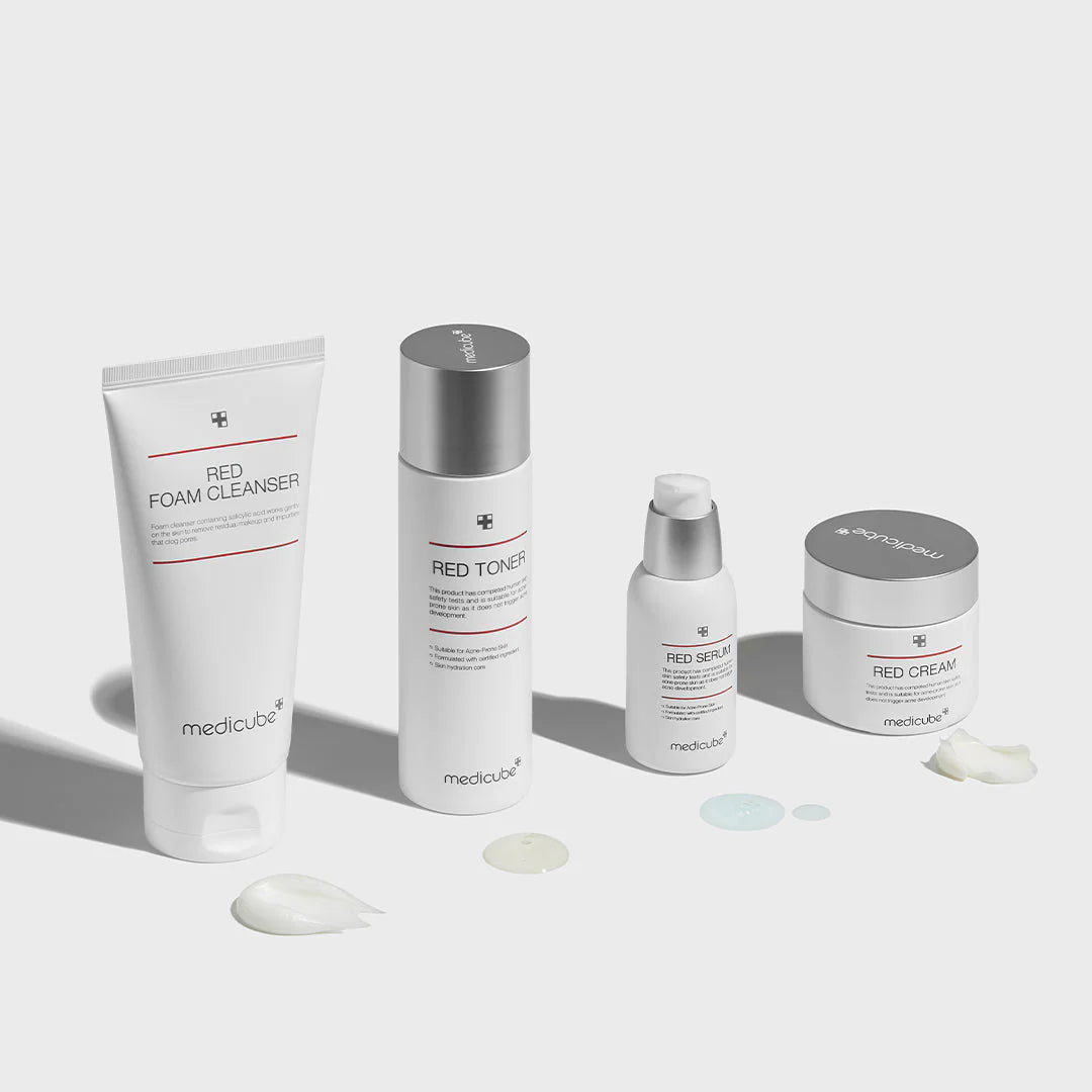 - Red Foam Cleanser – Cleanser containing 0.45% salicylic acid.